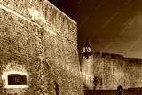 Old city walls in Old Town of Dubrovnik at night in Dubrovnik, Croatia
