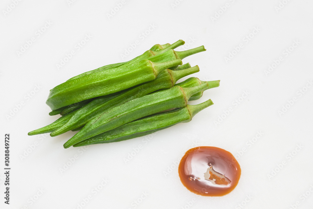 Some okra on white background