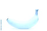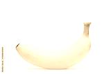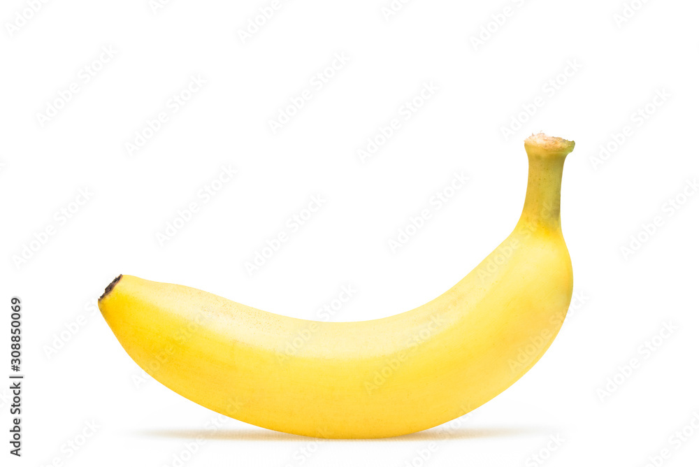 A banana stands alone on white background