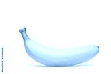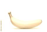 A banana stands alone on white background