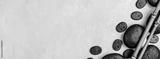 Top view of hot spa stones set for massage treatment on gray concrete background with copy space. Elegant and luxury spa. Flat lay, overhead, mock up, template. Health and beauty care concept