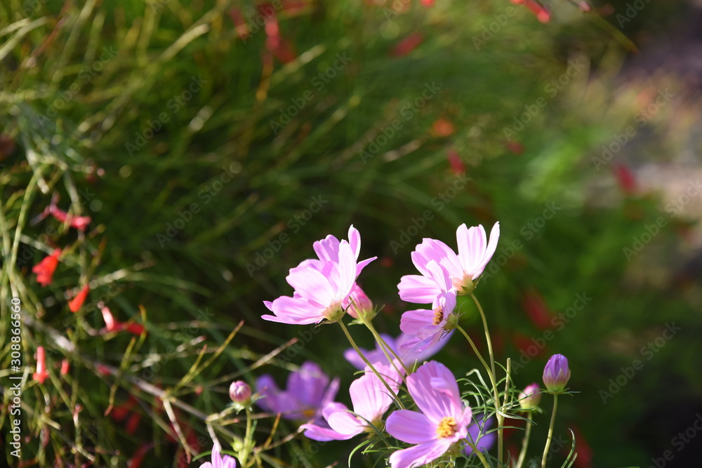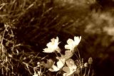 sunlight and cosmos flower on field with vintage toned.