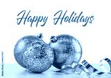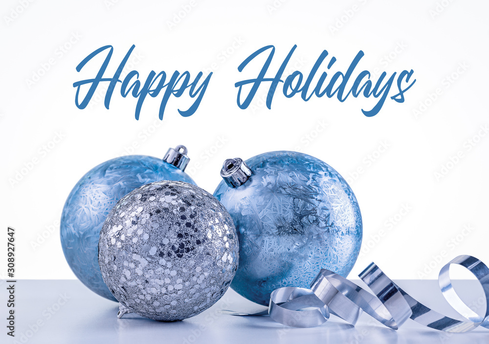 Festive blue and silver balls, Christmas decorations on a shiny background. Happy Holidays.