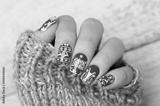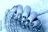red Christmas manicure with deer and snowflakes and Norwegian pattern
