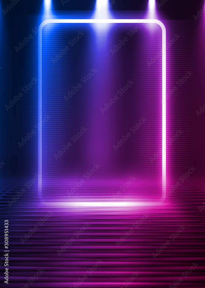 Empty dark abstract background. Background of empty show scene. Glow of neon lights on an empty concert stage.