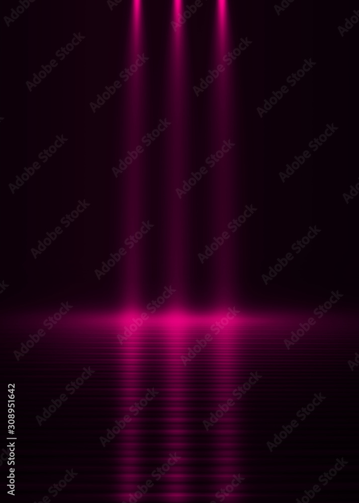 Empty dark abstract background. Background of empty show scene. Glow of neon lights on an empty concert stage.