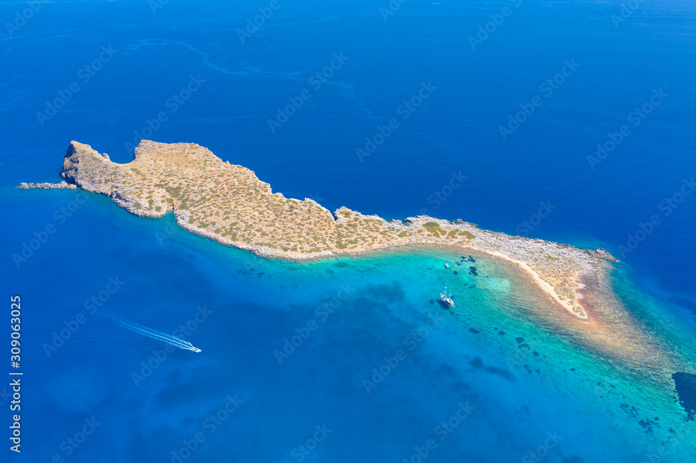Glaronisi island near the amazing beach of Kolokitha, Elounda, Crete, Greece.