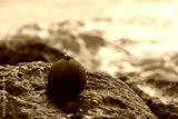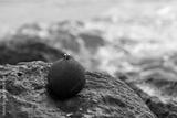 Red Christmas ball on sea rock