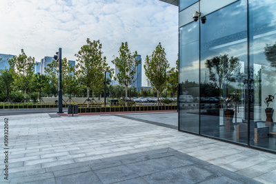 empty brick road near by office building, china.