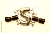 Christmas countdown. Gold number 5 with festive cristmas cracker decorations