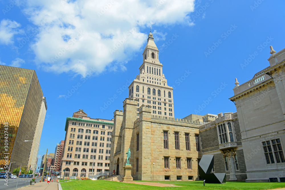 Hartford modern city skyline including Travelers Tower in downtown Hartford, Connecticut, USA.