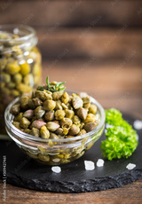 Fresh caper in the glass bowl