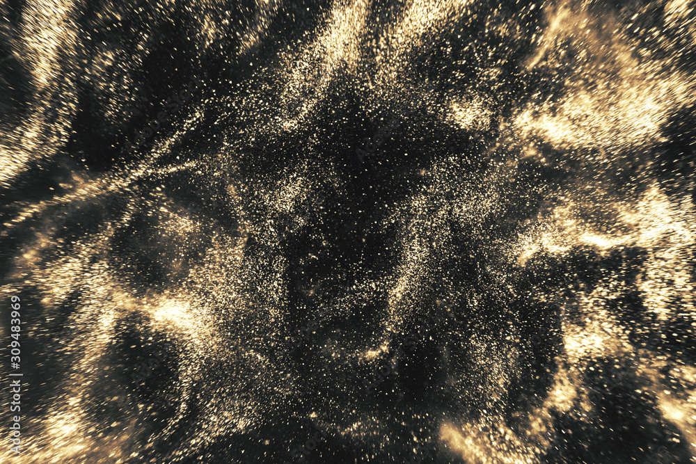 Abstract elegant, detailed black and gold glitter shimmer particles flow with shallow depth of field. Holiday magic shimmering luxury background. Festive sparkles and lights. de-focused.