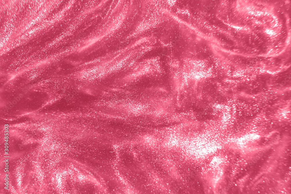 Abstract elegant, detailed pink glitter particles flow with shallow depth of field underwater. Holiday magic shimmering luxury background. Festive sparkles and lights. de-focused.