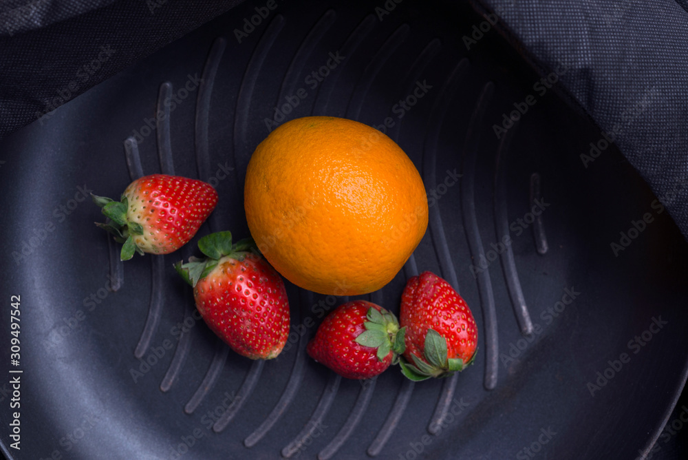 Few strawberries and oranges.