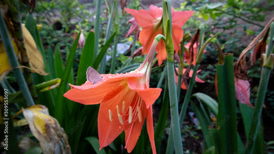 Beautiful lilies in the yard, an ornamental plant that is suitable for planting around the house
