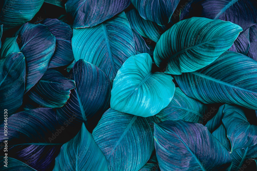 leaves of Spathiphyllum cannifolium, abstract green texture, nature background, tropical leaf