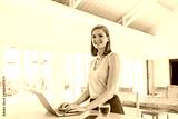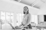 Beautiful freelancer woman typing on laptop at work space