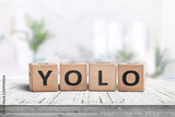 Yolo abbreviation sign in a bright living room