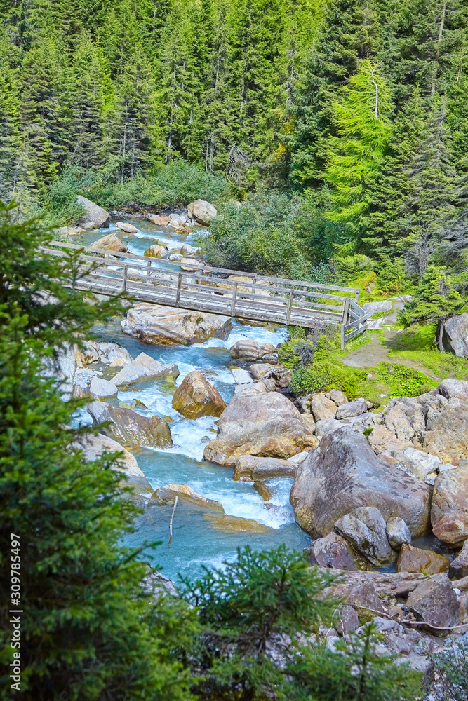 Beautiful mountain stream in the Stubai Valley at the "Grawa waterfall" Austria