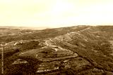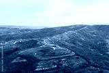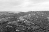 Perspective image of a narrow road running down a mountainside in a mountainous area. The view from the top. Shooting from a drone.
