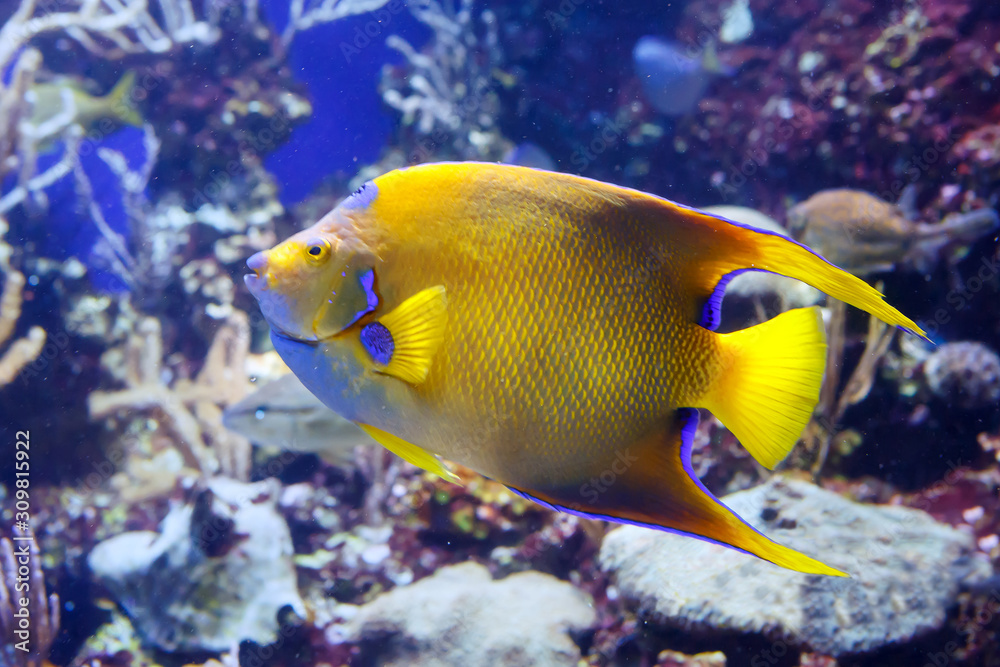 Beautiful Queen Angelfish (Holacanthus ciliaris), shot close up