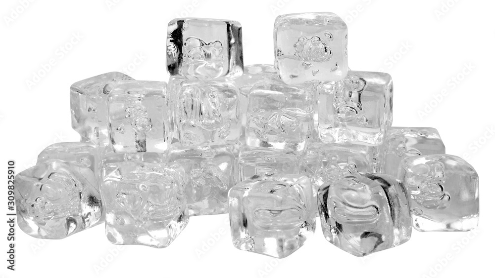 Many ice cubes isolated on a white background.