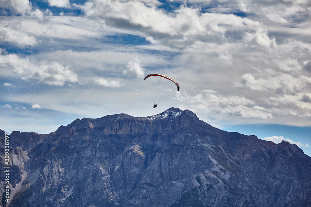 Paragliding in the mountains, in the Stubai Valley, Tyrol, Austria.