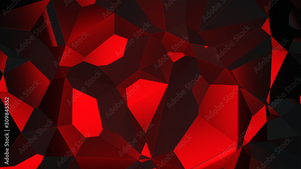 3d ILLUSTRATION, of red abstract crystal background, triangular texture, wide panoramic for wallpaper, 3d background low poly design
