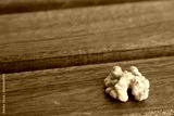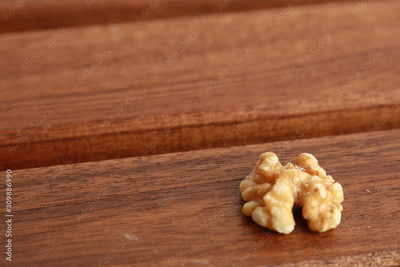Peeled walnuts on wooden background