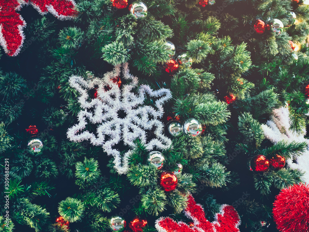 Christmas tree Snow flake ornament decoration Xmas tree Holiday background