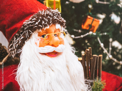 Santa Claus with Christmas gift Snow falling Winter Xmas holiday festival decoration