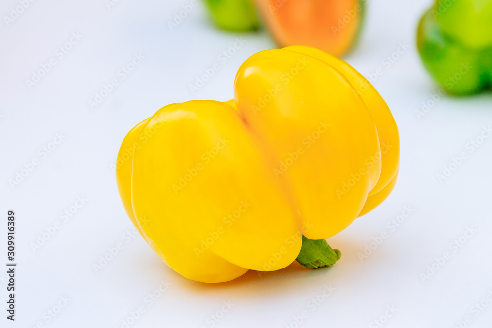Fresh yellow pepper on a white background.