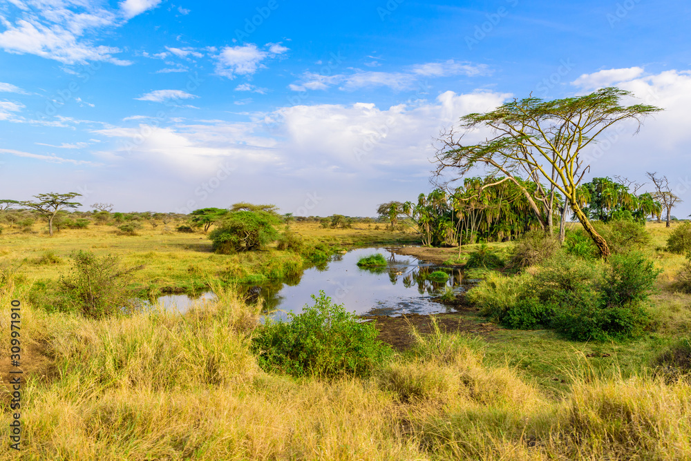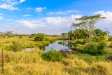 River and Lake in beautiful landscape scenery of Serengeti National Park, Tanzania - Safari in Africa