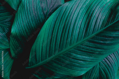 leaves of Spathiphyllum cannifolium, abstract green texture, nature background, tropical leaf