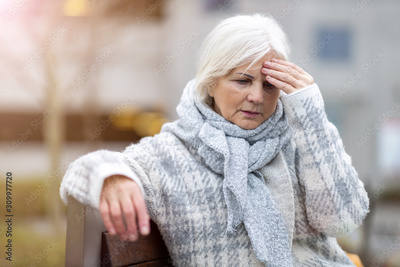 Senior woman suffering from a headache