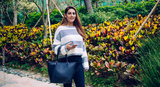 Happy woman chilling in park with smartphone