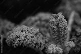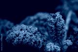Close-up of leaves of frozen green cabbage in the garden in winter after the first frost