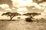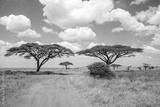 Game drive on dirt road with Safari car in Serengeti National Park in beautiful landscape scenery, Tanzania, Africa