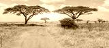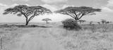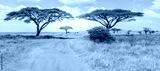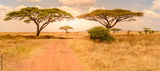 Game drive on dirt road with Safari car in Serengeti National Park in beautiful landscape scenery, Tanzania, Africa