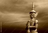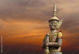 Statues of giants in Thai literature on sunset background.