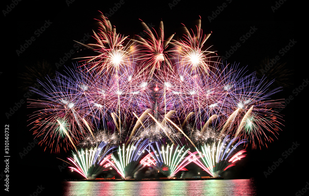 Colorful Fireworks in the Night sky,Fireworks Festival in Pattaya.