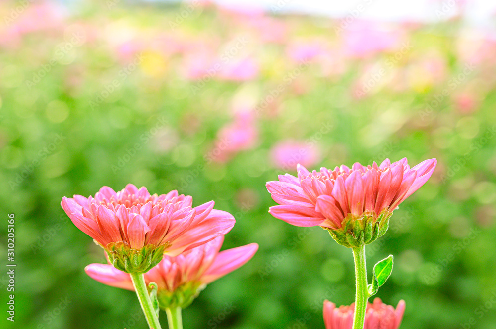 Selective focus of beautiful pink or red flower with soft blurred bokeh background.