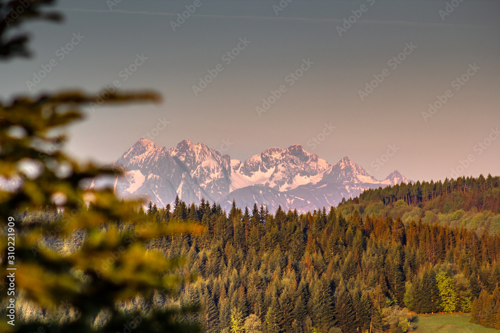 High Tatras at sunrise. View from near Litmanova, Slovakia.