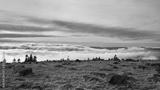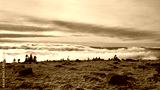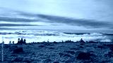 On the mountain top at sunset over a sea of clouds. A sky in beautiful colors, Mount Brocken, Harz mountain range, Saxony-Anhalt, Germany.