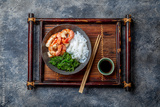 Shirataki noodles, shrimps and seaweed chuka bowl. Healthy low carbs, low calories lanch