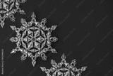 Holographic clear glass snowflakes lying diagonally on trendy dark blue background. Minimal christmas concept. Flat lay style. Color trend 2020 year. Copy space. Open composition