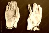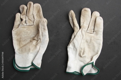 used leather work gloves in color background