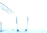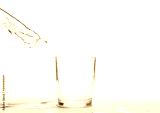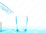 water splashing into a empty water glass, where the pured water is making splash, drops and shapes