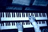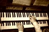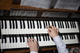 hands play on the organ.